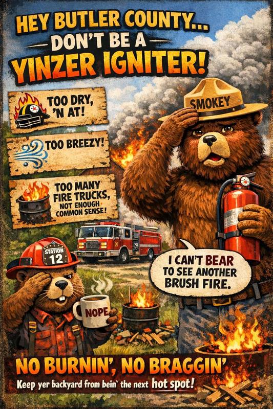 🚨 Translation for Butler County: It’s dry. It’s breezy. And your backyard burn pile is just waiting to become a full-blown “why are there fire trucks here?” situation.